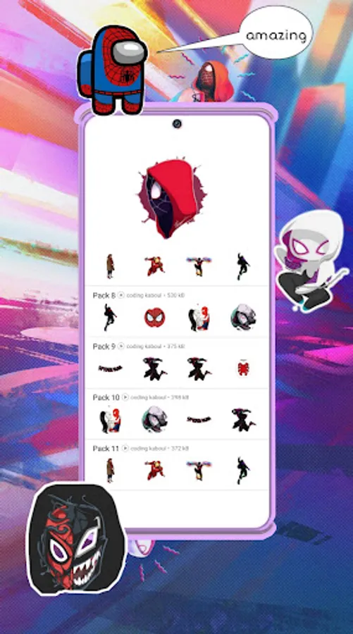 Download Spider-Verse Movie Stickers for GB now and unleash the power of the Spider-Verse right at your fingertips. Let your conversations come alive with these incredible stickers, as you embark on a journey through the thrilling world of Spider-Man and his legendary battles. Prepare to be captivated by the charm, excitement, and sheer awesomeness that these stickers bring to your messaging experience. Get ready to become a part of the Spider-Verse!