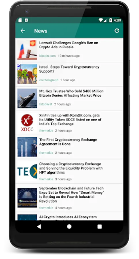 ✓ News section to keep you up to date with the latest news from CryptoCoinsNews, CoinTelegraph, and Coindesk