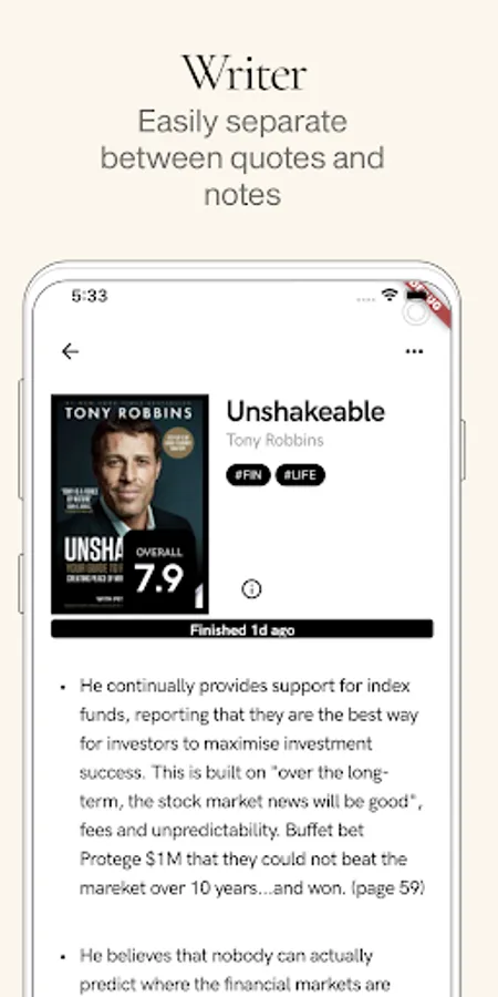 * WRITER: add notes, quotes, summaries and reviews to books/papers