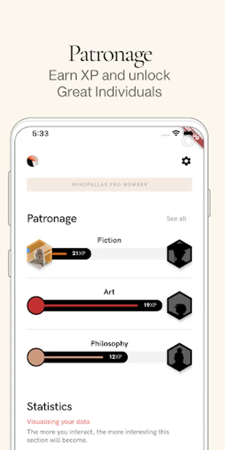 In MindPallas, through the addition of books and notes, you work toward creating a fresco of your own; populated with unlockable Great Individuals.