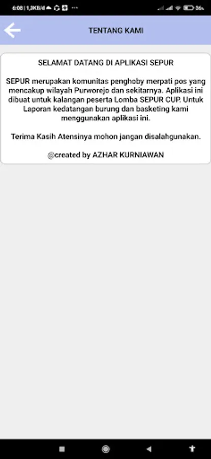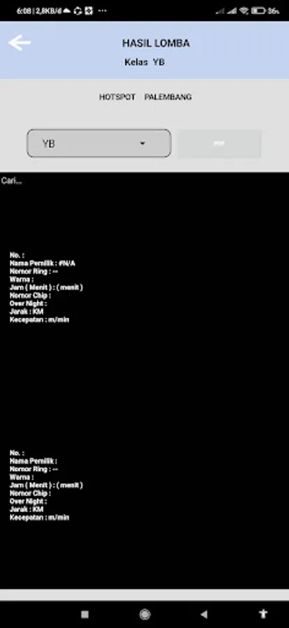 This application is used for postal pigeon competitions among participants in the race track (around Purworejo)