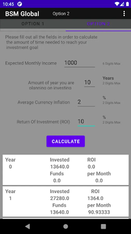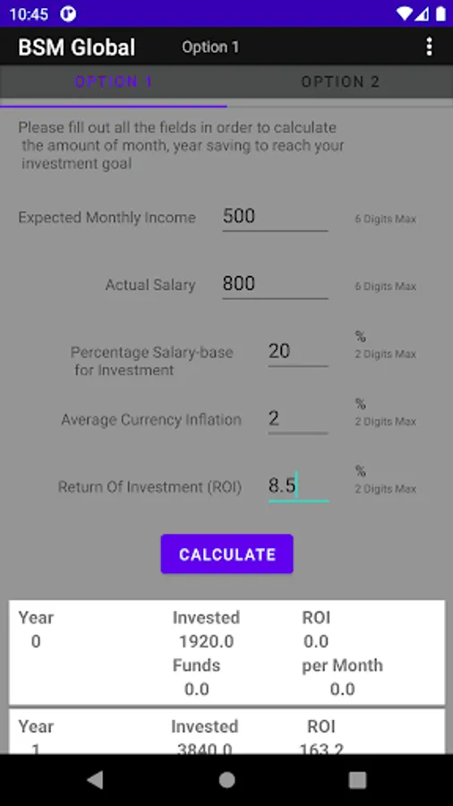 This application shows characteristics of calculator which allows the users perform small tables where you can observe what return you would have on long term investments. Considering the inflations and other variables. Among the results you could see weightings of incomes similar to a retirement plan but with not use of the funds. Due the idea is finding a living way just with the R.O.I (Return of Investment) of such investments. F.I.R.E (Financial Independence Retire Early).