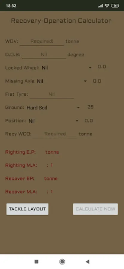 *Please input the required data which is the 'Weight of Vehicle (WOV)' and 'Recovery Winch Cut-Out (Recy WCO)' to use this app.