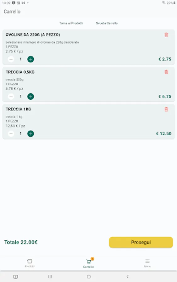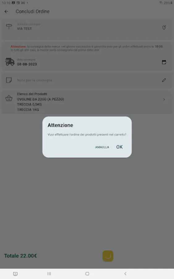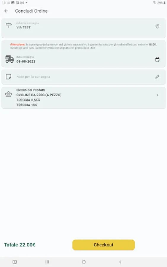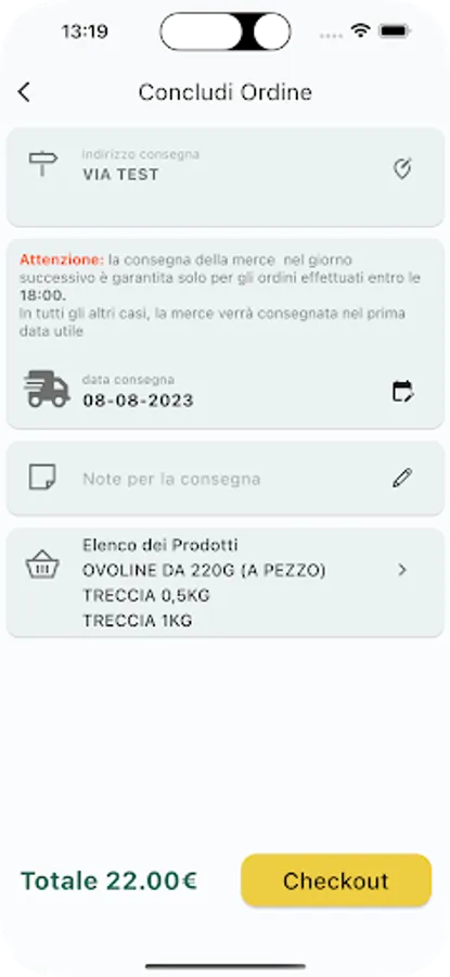 The application that allows you to manage orders at the Giancarlo D'Angelo Farm.