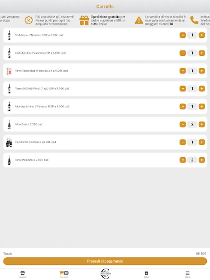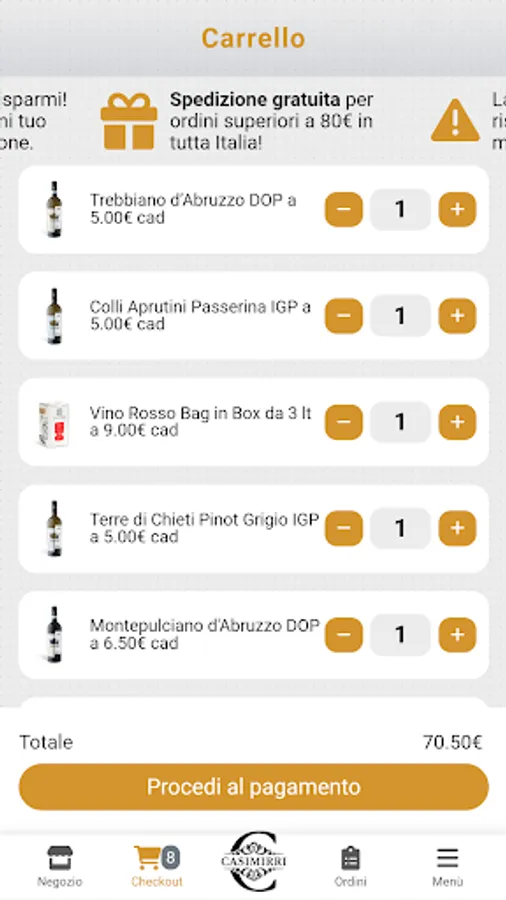 The Casimirri family has been operating in the area for over five generations, consolidating its experience over the years. The farm specializes in the production of wine and extra virgin olive oil. All products are treated in an artisanal way and according to the ancient Abruzzo traditions handed down by the ancestors. Our customer thus receives a very high quality product at a very competitive price. The Casimirri farm has about 20 hectares of vineyards whose plantation dates back to over fifty years ago. The maintenance and care of the vineyard is still done manually by elderly local farmers. The grapes harvested in the freshest daily bands and processed in the cellar very quickly so as not to spoil the freshness of the product. In order to obtain a grape of the highest quality, and therefore the best possible wine, larger quantities of production are sacrificed.