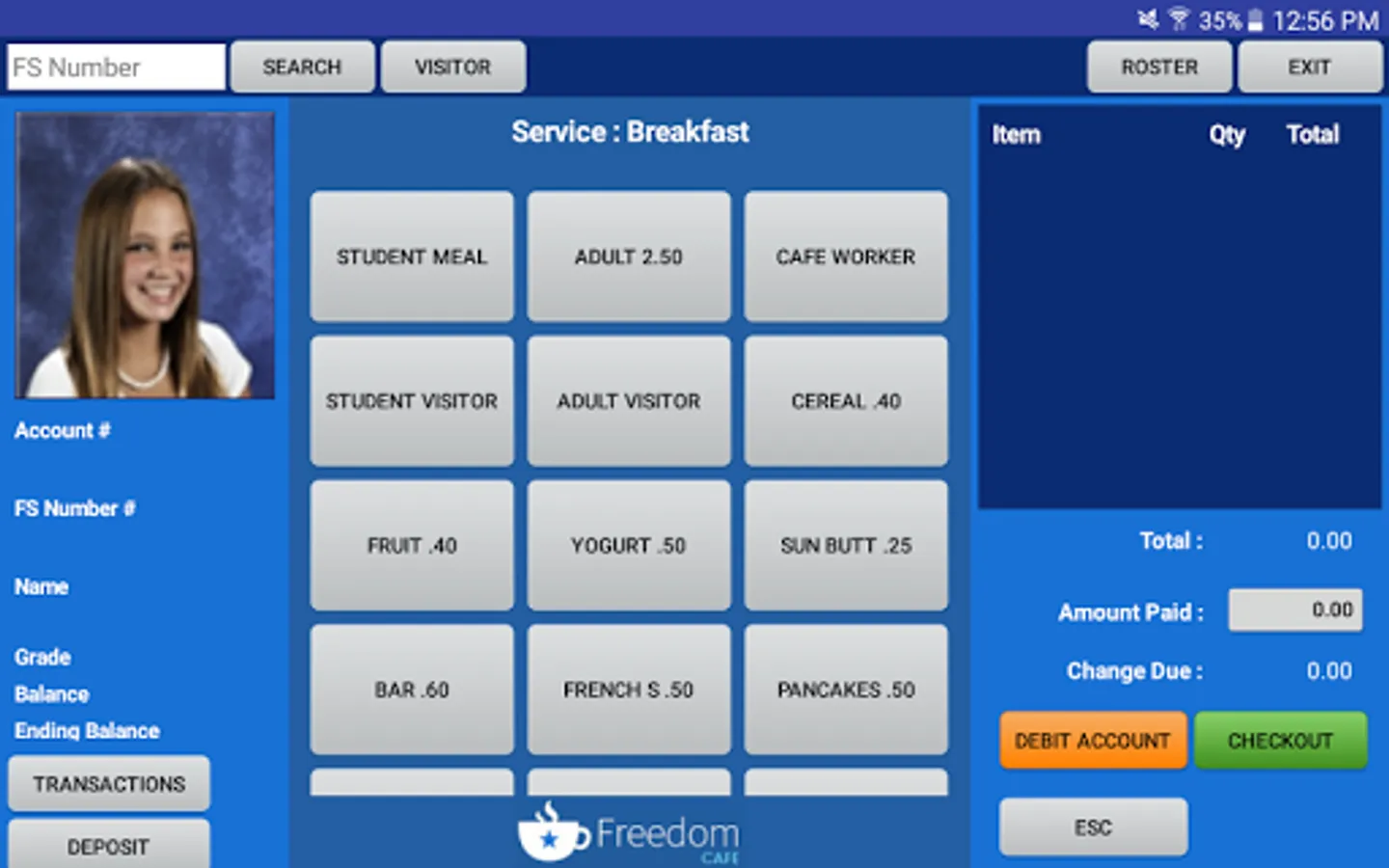 Enhance your food service operation by utilizing the Freedom Cafe Point-of-Sale on Android! We hope you enjoy our tablet version of the point-of-sale that features amazing speed, great stability and the ability to implement a mobile point-of-sale while still utilizing your existing desktop, all-in-one or laptop cafeteria solution.