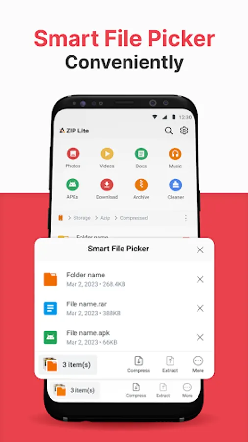 ⭐Smart file picker helps you to gather files and compress file, compress word document extremely convenient