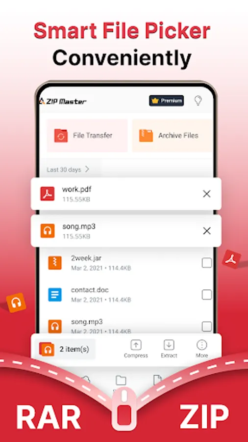 ⭐Smart file picker helps you to gather files and compress file, compress word document extremely convenient