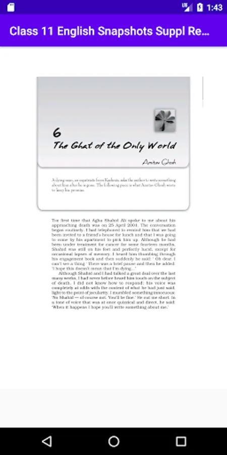 Class eleven english snapshots supplement Reader is book for both students and teachers.11th English Snapshots Suppl Reader is a digital book. This is “Class 11 English Snapshots Suppl Reader" book prepared by Digital books. Class 11 English NCERT Book also works without Internet. Download in one click and read 11th English Book offline. In this book “Class 11 English Snapshots Suppl Reader” you'll learn following given units