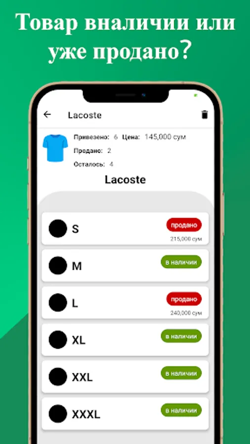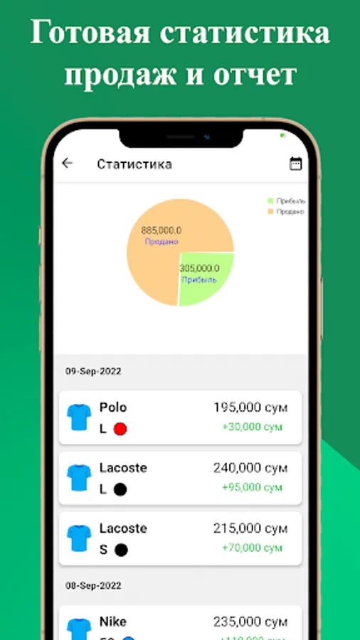 This app will help you manage sales and keep track of available and sold clothes. In addition, it provides sales and revenue statistics.