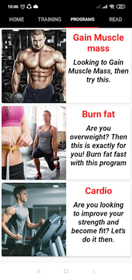 Gym Pro app is one of the best fitness apps that is suitable for any gender and for gaining muscle, burning fat or for cardio training.