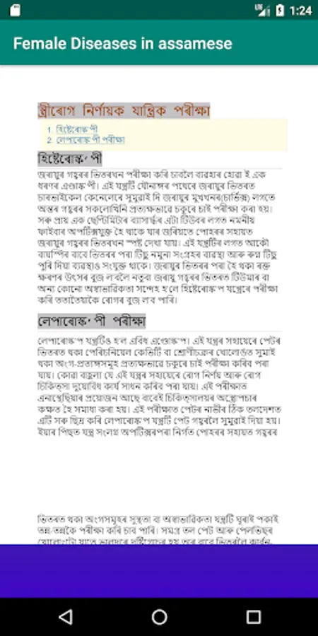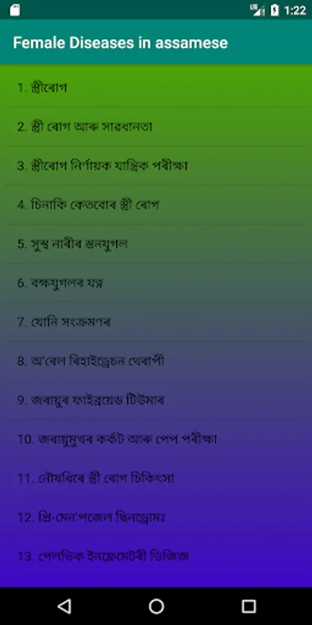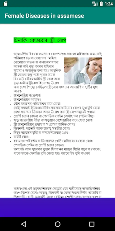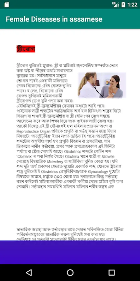 Basic Female Diseases Handbook স্ত্ৰী ৰোগ আৰু সাৱধানতা, this app for female diseases and reproductive system diseases and also list almost all common female health problems. The common women health problems and solutions incurable female diseases by this application. This female disease handbook written in assamese language. Here the list