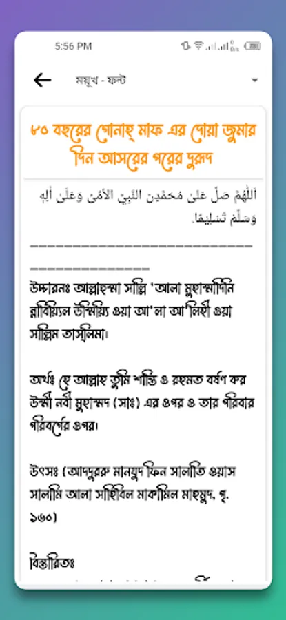 • প্রতিটি দোআর সাথে এর অর্থ, উচ্চারণ এবং ফযিলত দেয়া আছে ।