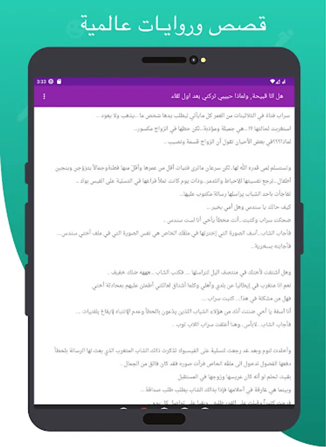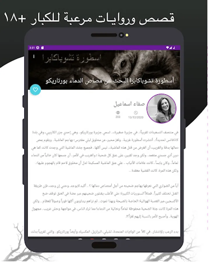 It seems like you're describing a mobile app for Arabic readers that offers a wide range of stories, novels, and content. The app includes various categories of stories, such as love stories, horror, war stories, ancient myths, and short stories. Additionally, it provides sections for children's stories, Islamic stories, success stories, horror stories for adults, and more. The app also offers features like searching for stories, changing the app's theme, adjusting text font and background colors, marking stories as read, copying and sharing stories, and organizing content in an aesthetically pleasing manner.
