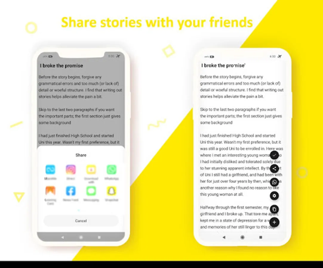 Copy any Story and share with your friends via WhatsApp, Facebook, and Twitter
