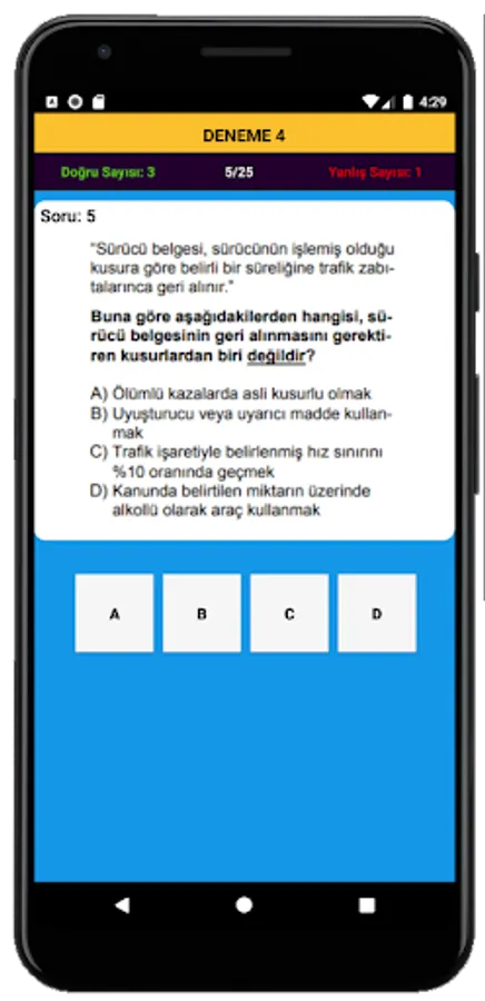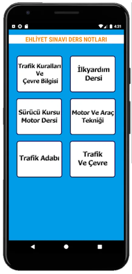 Driver's License Exam Questions application is a mobile application developed for driver candidates who want to get a 2022 driver's license, including Driver's License Exam Questions, Driver's License lecture notes.