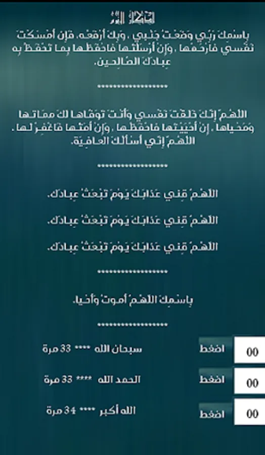 * يحتوي علي اذكار الاستيقاظ و النوم مكتوبة و مسموعة وامكانية التذكير بهم