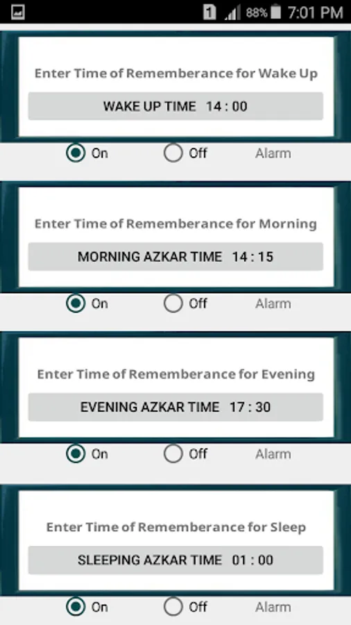 contains remembrance for wake up and sleeping written and sound and alarm for them