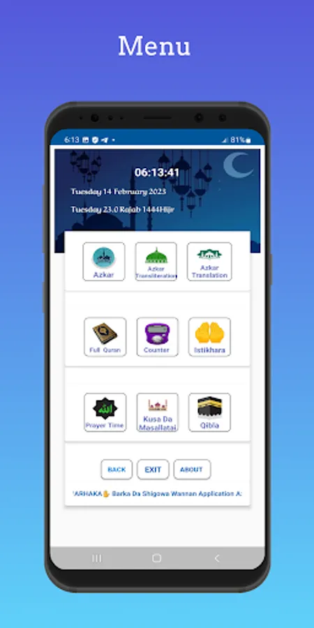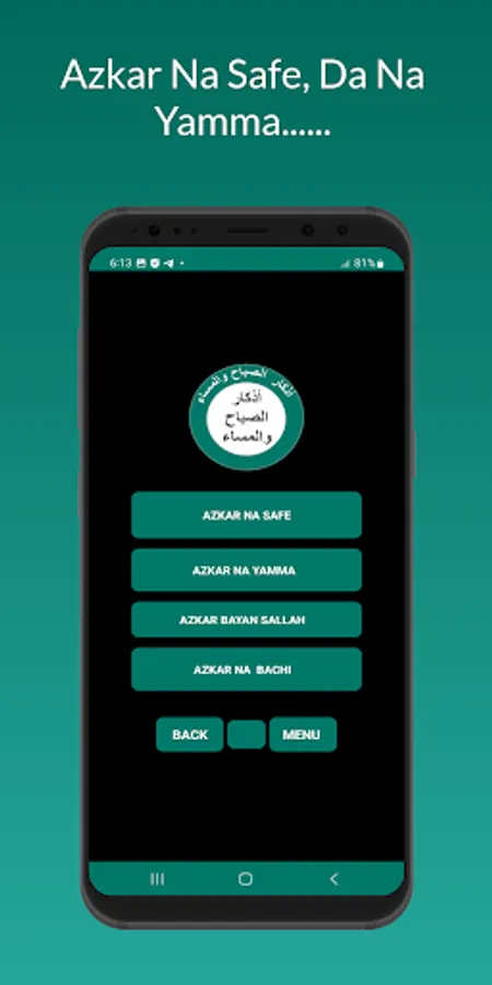 BARKA DA WARHAKA✋ Barka Da Shigowa Wannan Application Azkar Na Safe Da Yamma Mai Albarka✋ Ya Allah Ka ciyar damu daga halal cikin neman mu.👏 Ka sa albarka a cikin al'amuranmu.👏 Ka biya mana bukatunmu na alheri.👏 Ka kare mu daga dukkan fitinu da musifu.👏 Ka tsare mu daga sharrin mutane da aljannu👏 Ka fisshe mu jin kunya duniya da lahira.👏 Ka yi wa mahaifanmu gafara da rahma.👏 Allah Ka yi mana tsari da kunci, bashi, talauci da bakin ciki.👏 Ka yi mana albarka.👏 a bisa sunnar Manzon Ka (ﷺ) Amin")