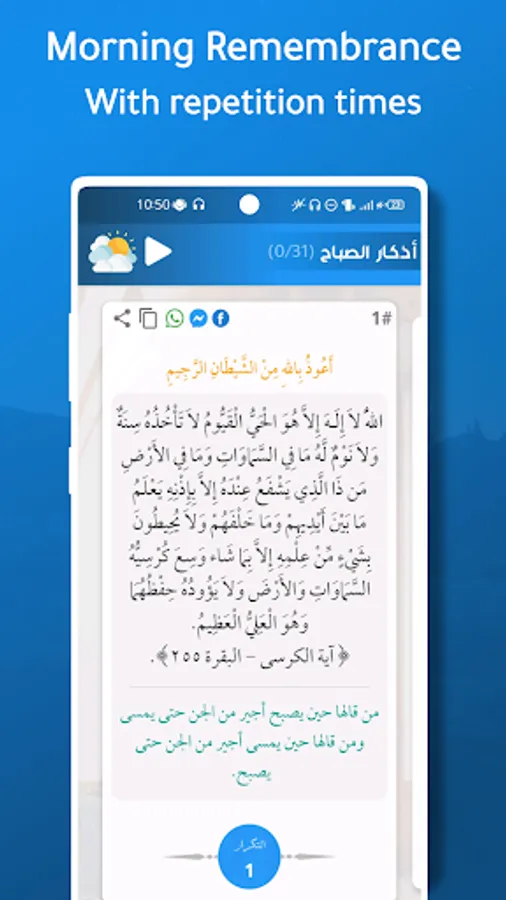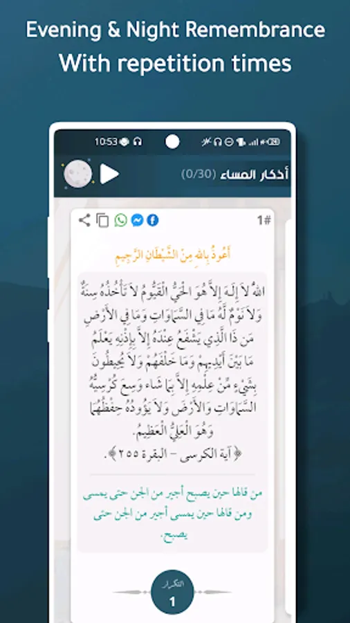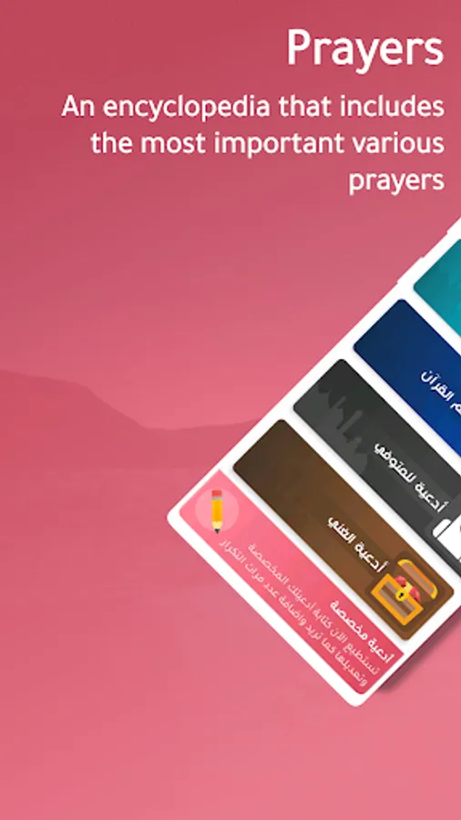 • 10 different types of supplications, such as prophetic supplications, and Quranic supplications.