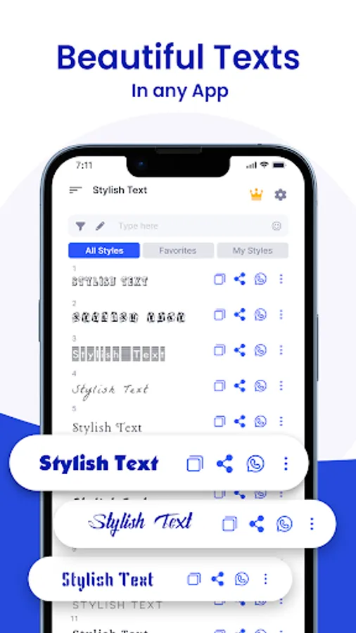 - Use chat styles in popup with Stylish Text Floating Bubble, Floating Bar or Text Menu option everywhere without opening the app every-time.