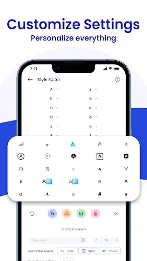 - Create new styles or edit existing with options to add Symbols or Emoji around the letters, words and phrases, replace a letter with other letters or customize spacing between words etc.