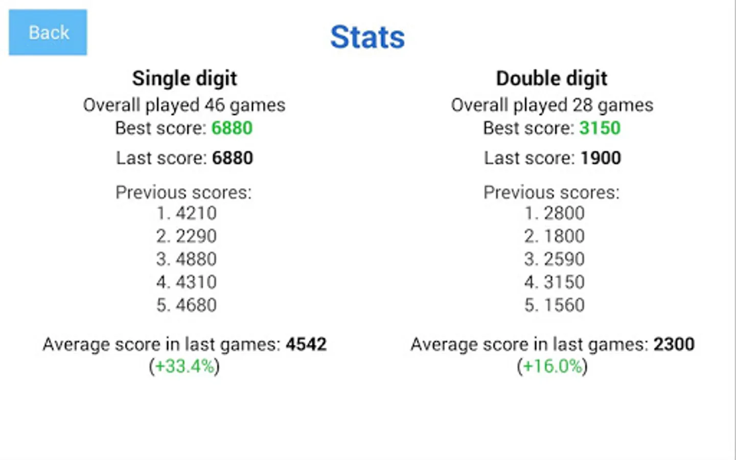 After starting the game, choose whether to play with a single-digit or double digit numbers. Initially, we recommend a single-digit numbers. Then you will see for a short period bubbles with numbers and after they disappear, you'll have to click them in the ascending order. Each game contains 10 rounds, after them the evaluation is done. From the statistics you can see how your memory and attention develops gradually.