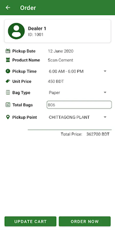 BINDER is a mobile application that allows any cement dealer for advance booking with delivery slot and complete the order payment through APP. It allows a user to see price variation of products on upcoming days, pre-order booking status, pick-up slot and delivery status. BINDER makes the order and delivery process simplified.