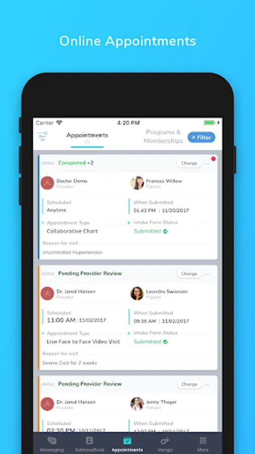 2) Schedule a phone call, a face to face video visit, or send a PhotoForward visit or a Quick Question secure messaging visit online and complete your visits through the app. Now you can access healthcare seamlessly when, where and how you want to---all at a transparent price.