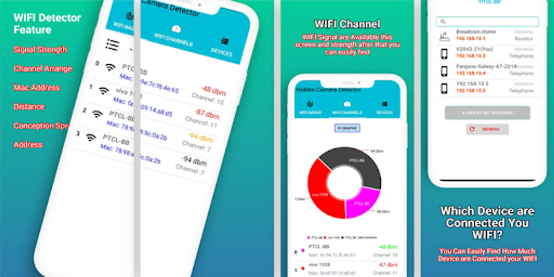 Like a wireless router, hidden cameras have a signal that can be detected by devices. open mobile app and using Wi-Fi Feature all WIFI are appeared this section and you can