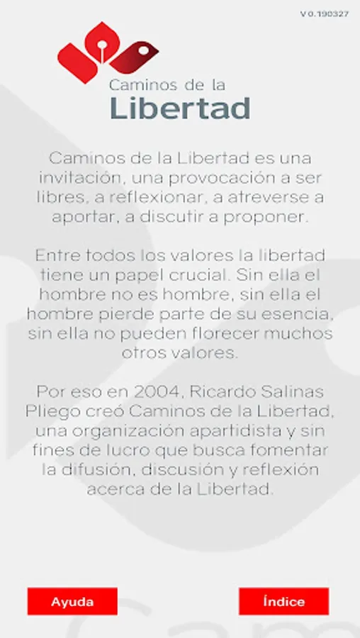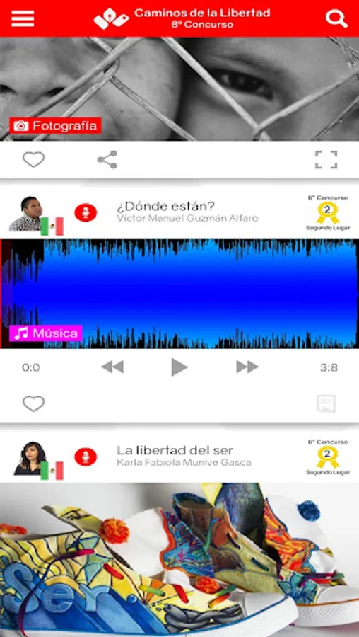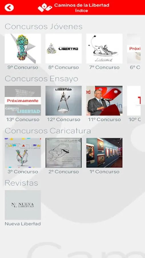 This application contains the winning works of the competitions Caminos de La Libertad organized by Grupo Salinas, these are divided into different categories and shown to the public taking advantage of the multimedia features of mobile devices.