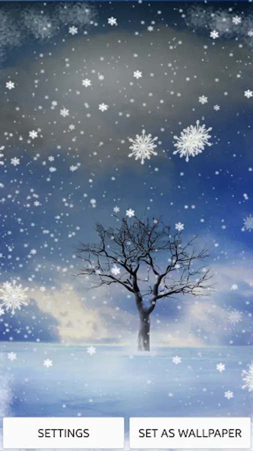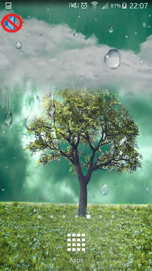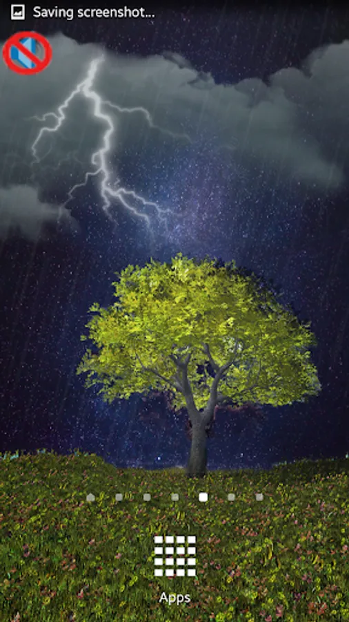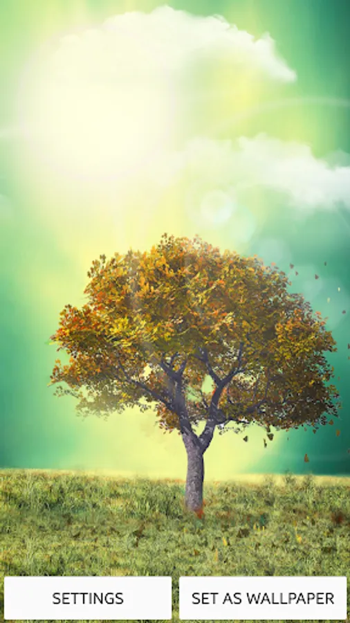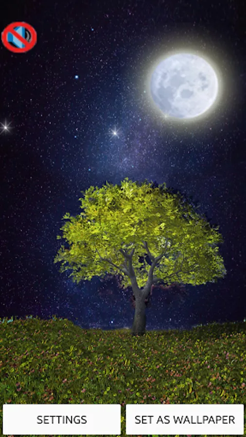 This live wallpaper features a relaxing nature scene, with sparkling and shooting stars and tree silhouette, clouds, rain, sun and all other natural weather conditions.