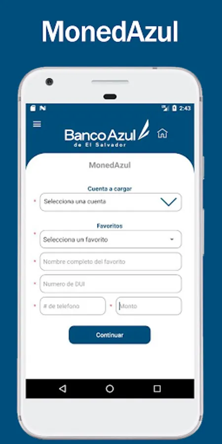 Applying direct access to Online Banking Bank Azul, will facilitate the entry and navigation in My BancAzul. Just enter your username and password, you will have immediate access to your accounts from any mobile device with Android operating system.