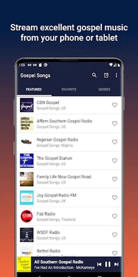 This is your App for the TOP FREE online Gospel radio stations from US and around the world.