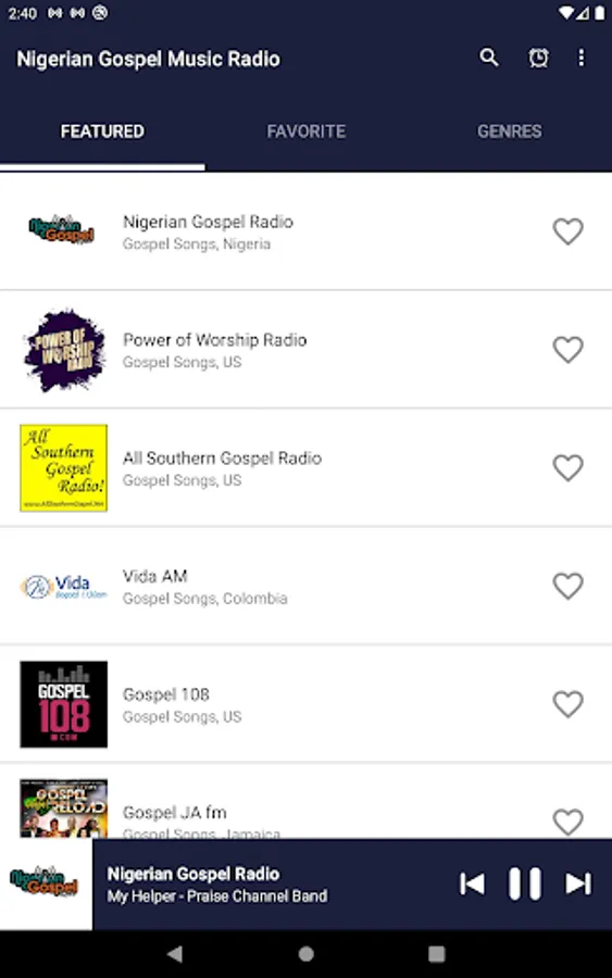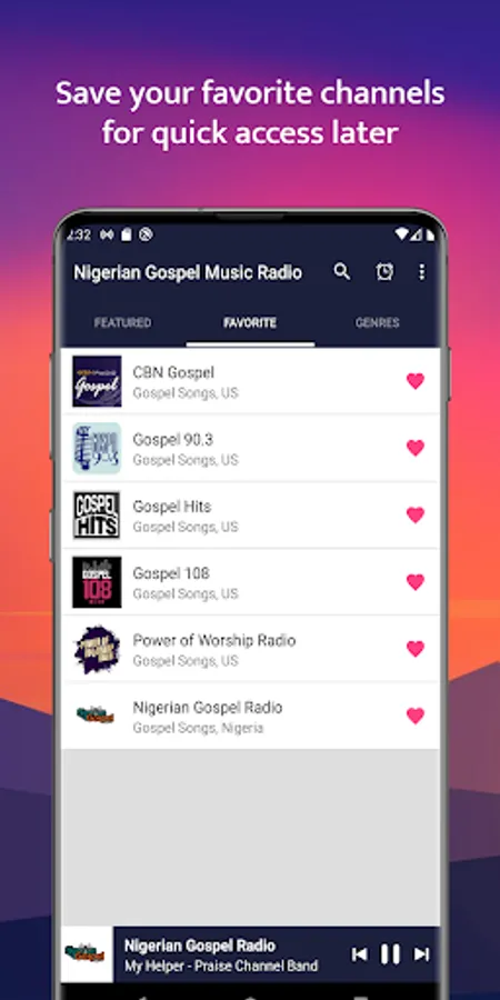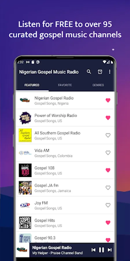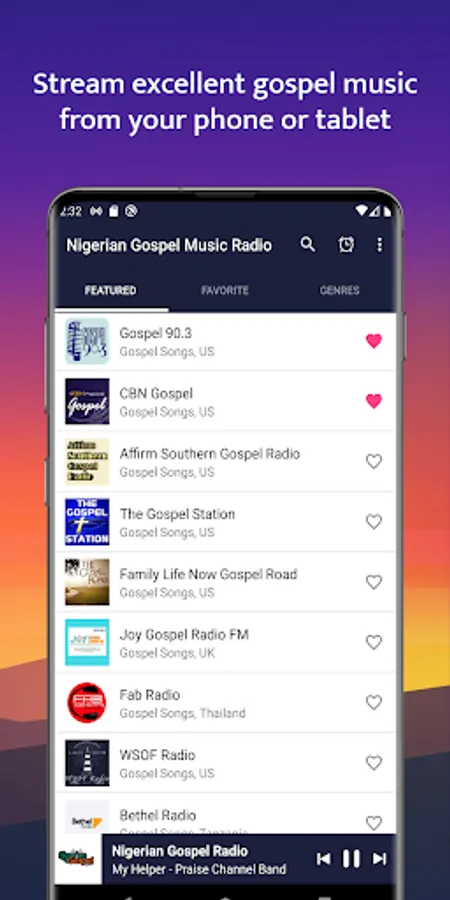 Lift your spirits with Nigerian Gospel Music Radio, the premier destination for soul-stirring gospel tunes from Nigeria's most talented artists. Experience the power of worship with our expertly curated playlists and live radio stations, featuring inspiring hits from Sinach, Nathaniel Bassey, Mercy Chinwo, and more. Connect with your faith through uplifting melodies and heartfelt lyrics. Download Nigerian Gospel Music Radio now and let your soul rejoice!