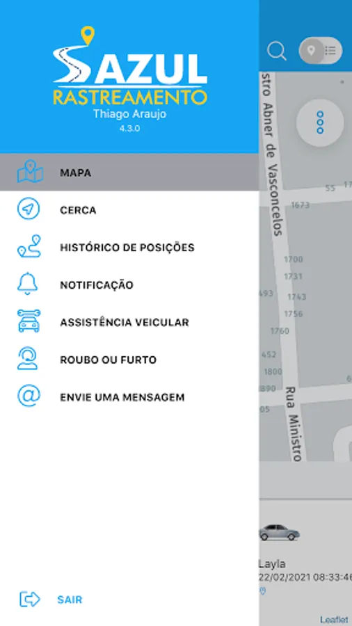 Application for monitoring the movable assets tracked by Azul Rastreamento.