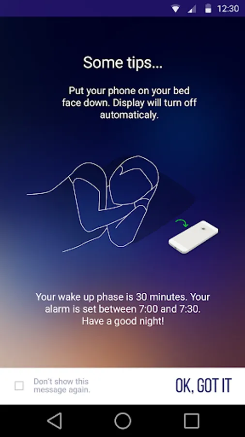 Sleep Time uses the sensitive accelerometer in your Android to detect movements during the night. Our advanced algorithm determines your phase of sleep, and sets off the alarm at the perfect moment. You will never wake up from a deep sleep feeling groggy again.