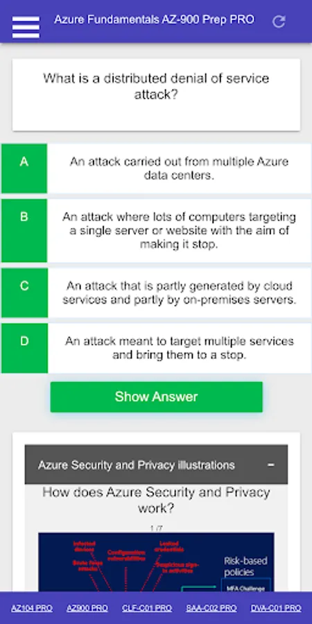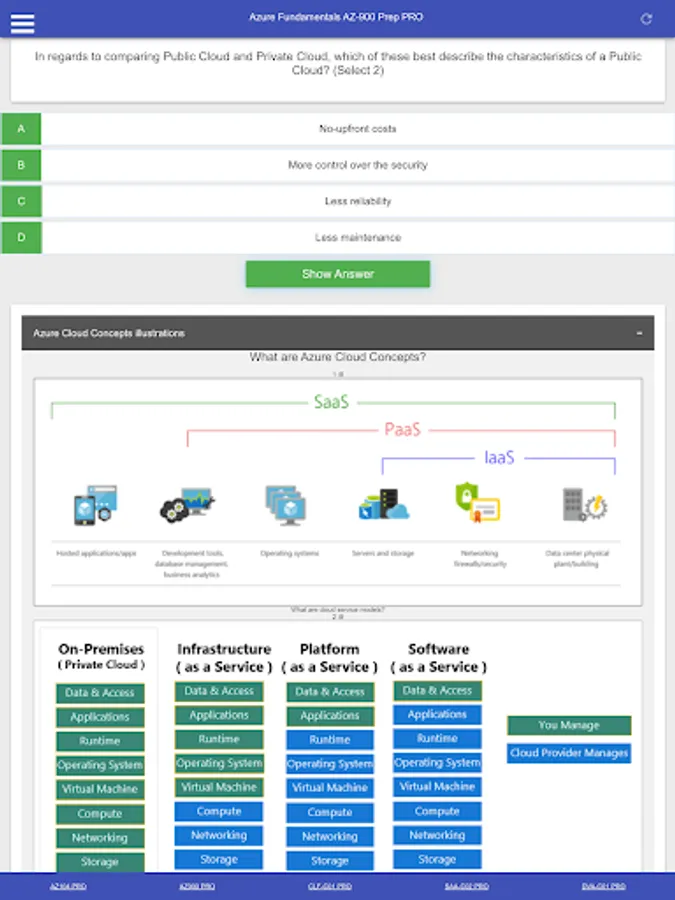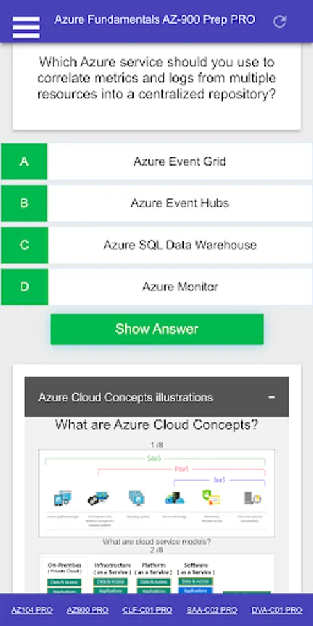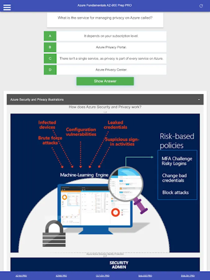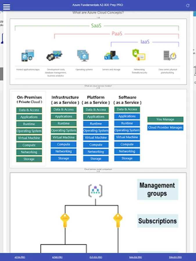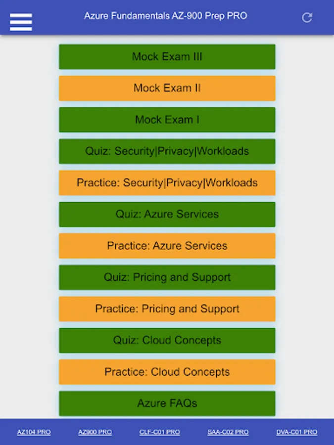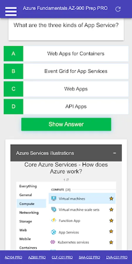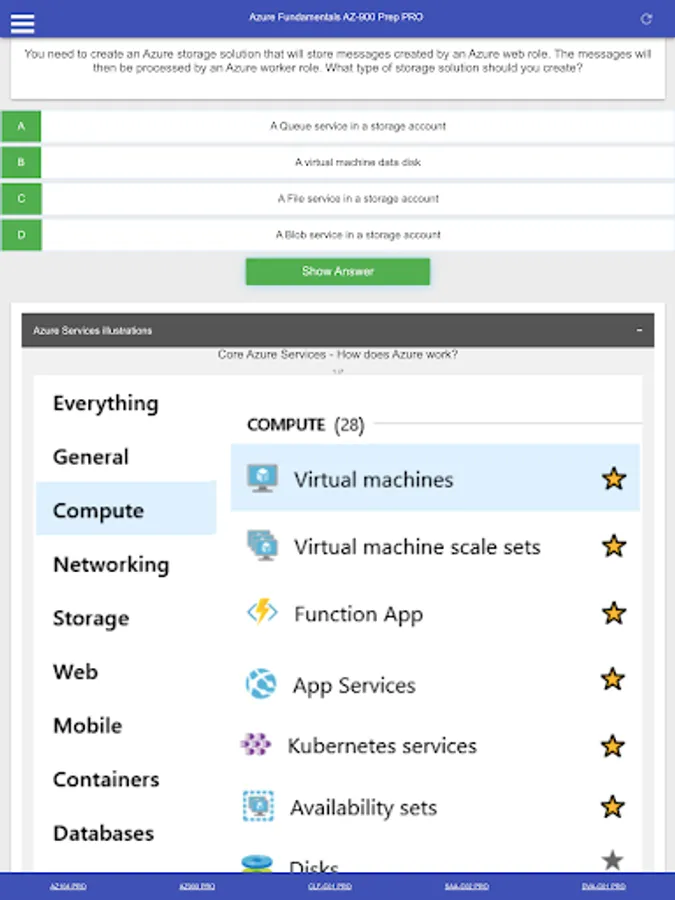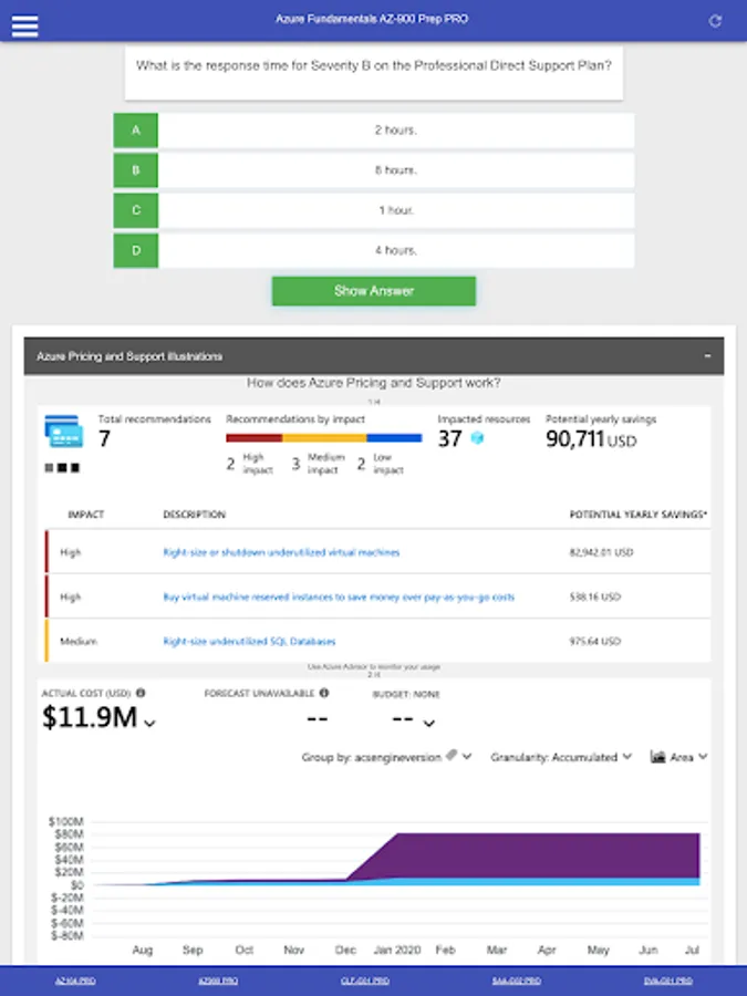 This is a Microsoft Azure Fundamentals AZ 900 Certification Exam Preparation PRO App including: