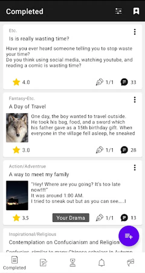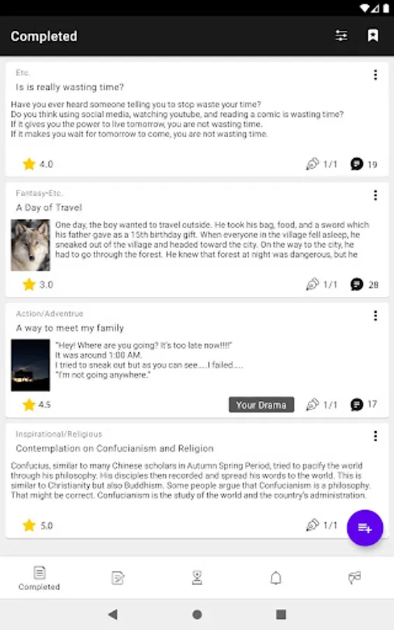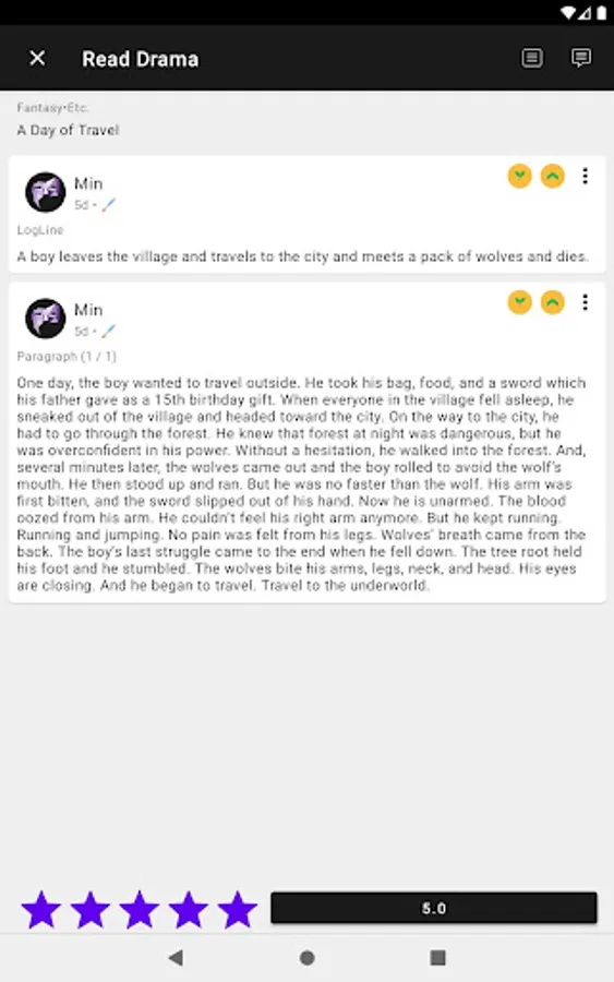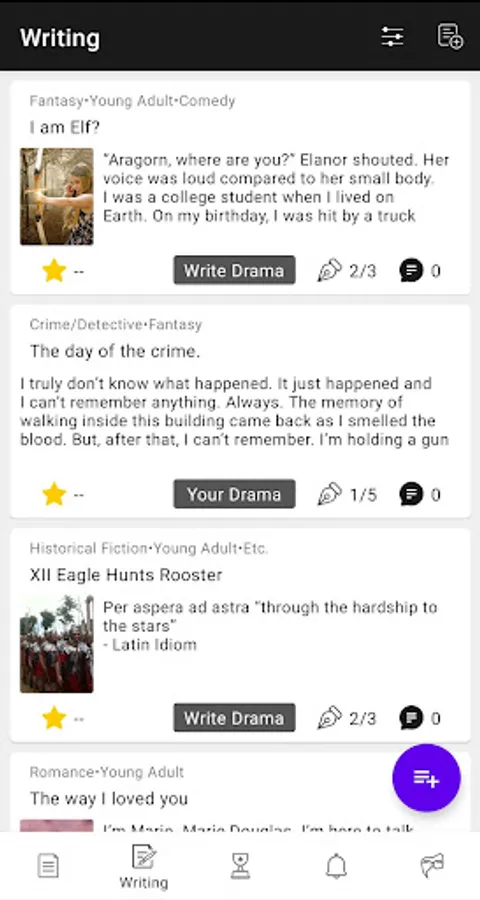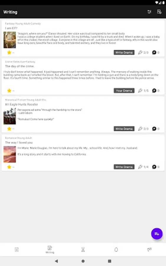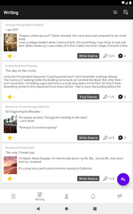 Drama Writer supports the short writing/reading for various genres ranging from fantasy to fanfiction.