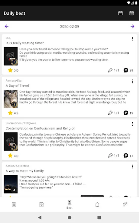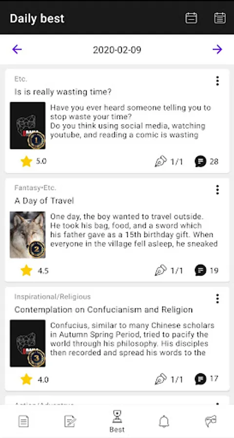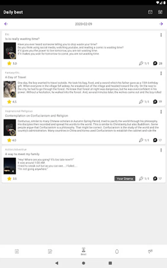 This screen has the best dramas. You can choose to see daily/weekly/monthly best and read them.