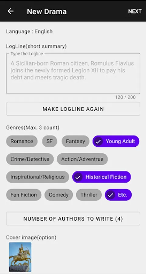 You can begin writing drama by selecting or writing a logline (a one-line summary). Also, you can join the writing-in-progress dramas that did not fulfill the number of authors.
