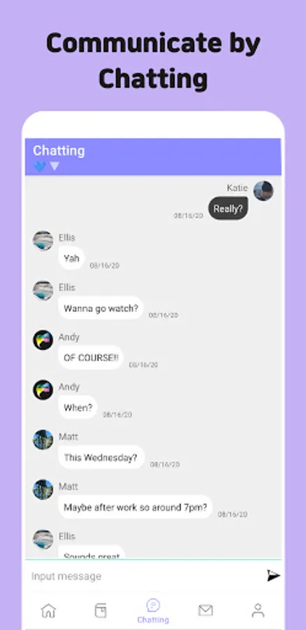 Contact with people in a group. Related to the number of members, it can be a group chat or an individual chat. Send message and spend a happy talking time with them.