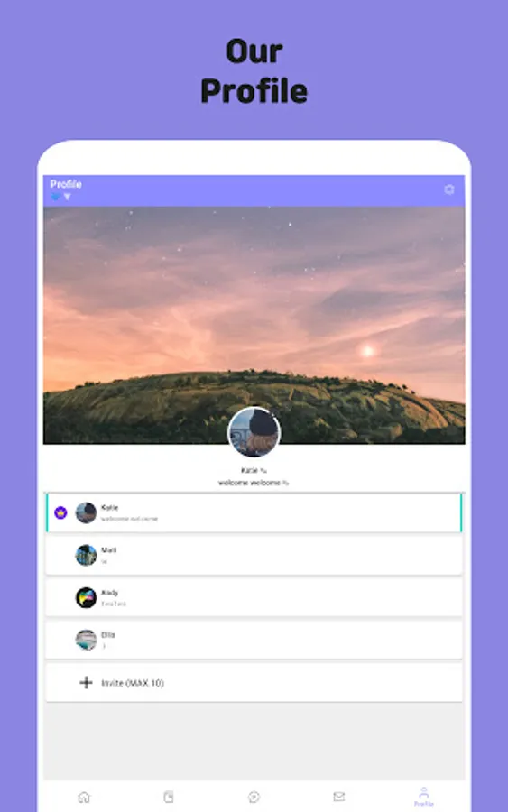 Change profile images and invite new members. Send invitation link TwoTwo is providing. Maximum of 10 people can join in one group