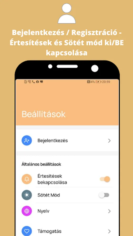 -- Setting notifications: you can set whether you want to receive notifications (push notifications).