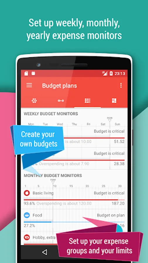 This money manager is a free personal finance manager app that opens new perspectives for you. Not only log your expenses, but proactively helps you to predict your future money spending. Money pro: expense manager helps you to predict your budgets value at the end of week, month or year. This great unique budgeting system helps you to order your expenses to money jars (budgets), and this is fully customizable.