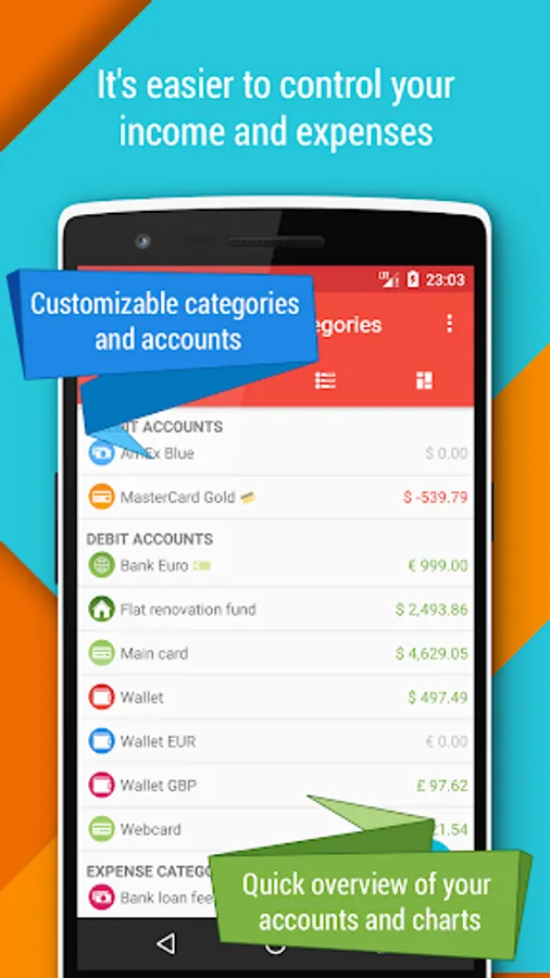 Features: ★ custom categories (accounts) ★ 200+ currencies (like USD, Euro, GBP, AUD, INR, CAD) ★ expense tracker ★ money monitor ★ custom budgets ★ budget plans ★ the best charts! ★ full control to your money flow ★ pro’ tool ★ all features are free ★ overall money manager
