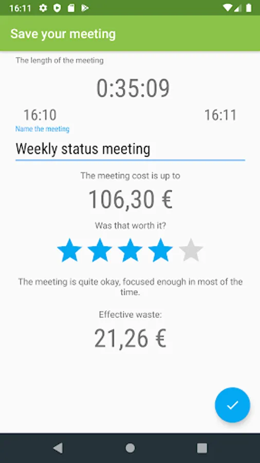 Meetings are mostly waste of time and money. Some managers may not realize that unnecessary people sitting on a meeting produces waste. This fine-tuned timer helps you to solve this problem. It is useful if you are a