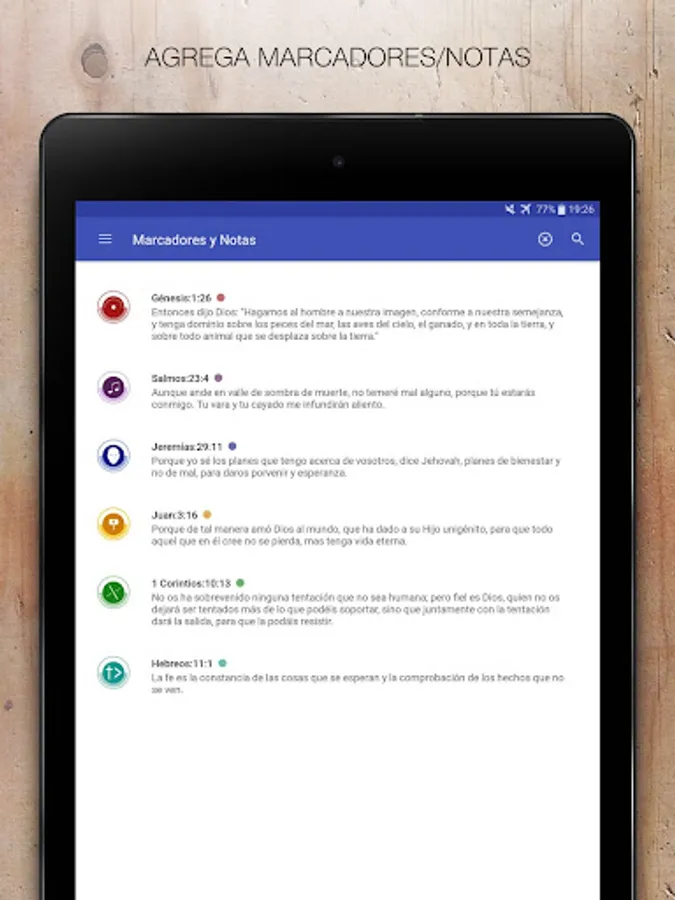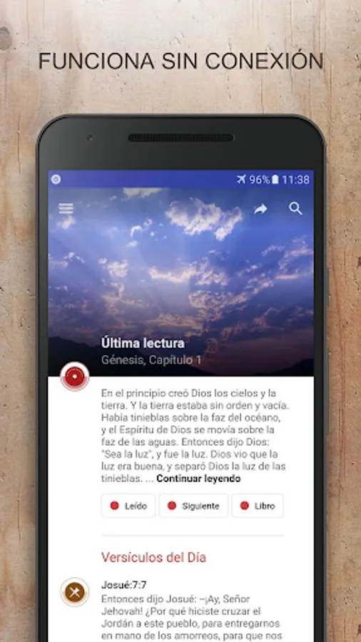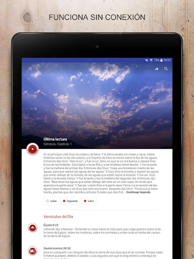 The Holy Bible in Modern Spanish is a free application that allows you to navigate through all the wisdom of the Bible in a clear and simple language with just a few clicks and without the need of an Internet connection.
