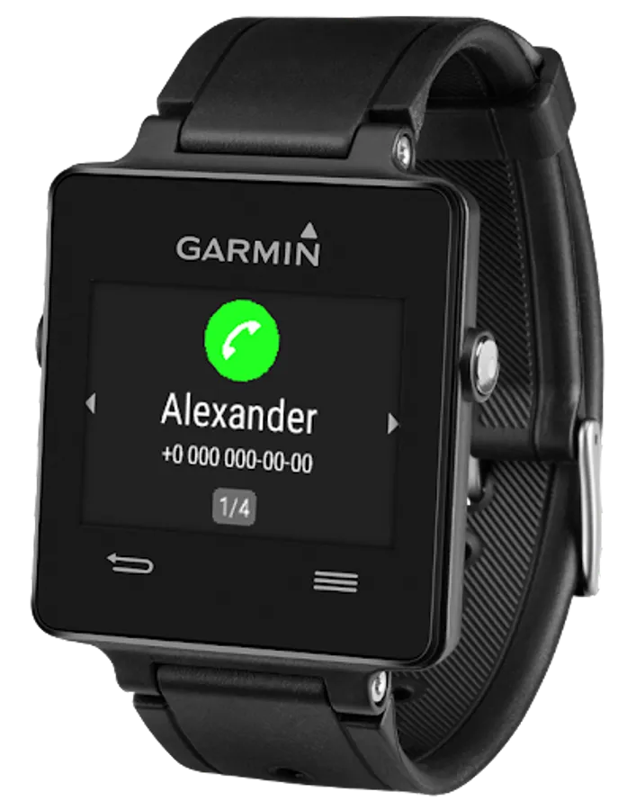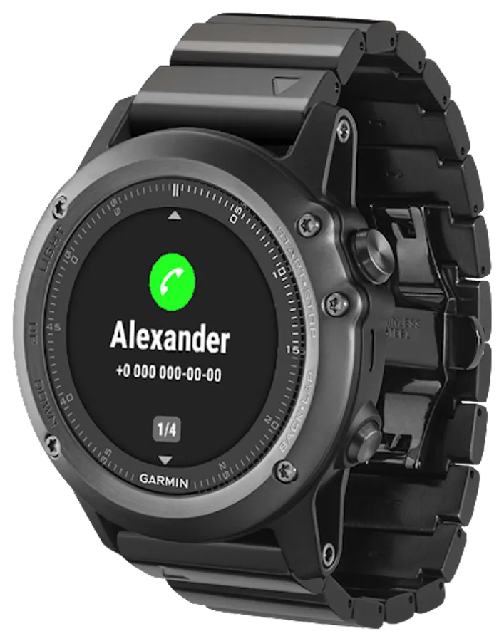 5. To make a call, select the desired contact on the watch and press the Start/Stop/Enter button. To reset the call, press the Back button or the Start/Stop/Enter.