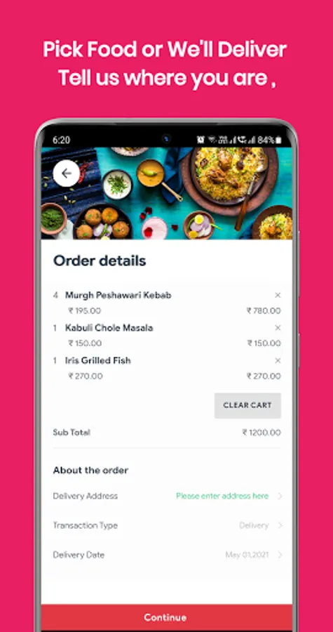 Pick your food order from any our menu and add it to your cart with a few clicks. That’s it.